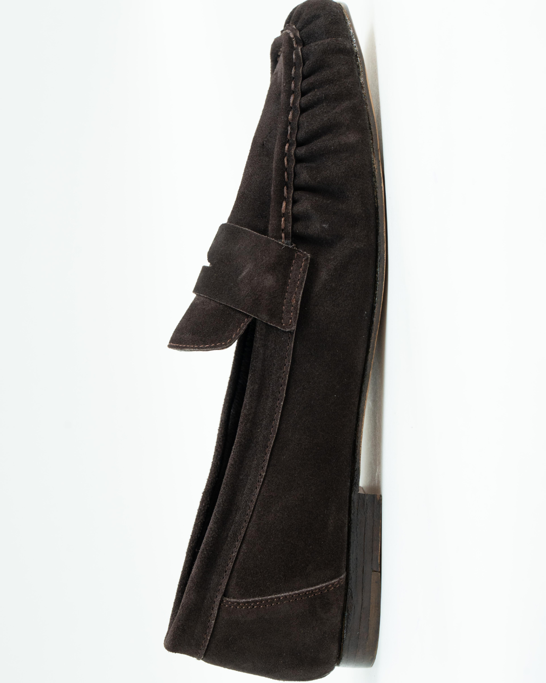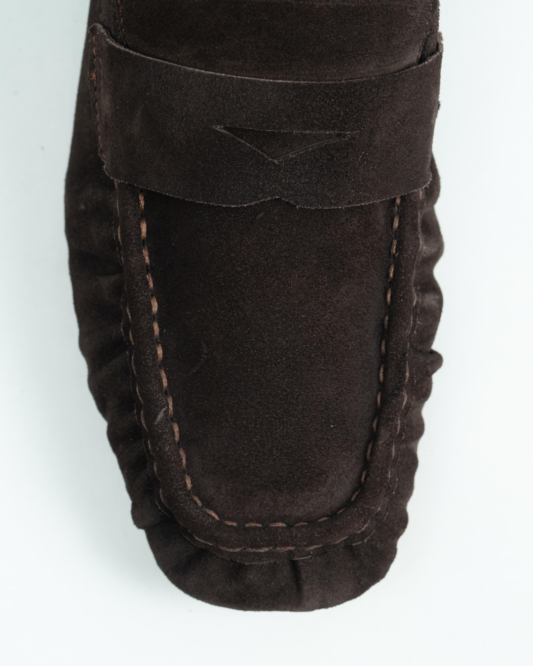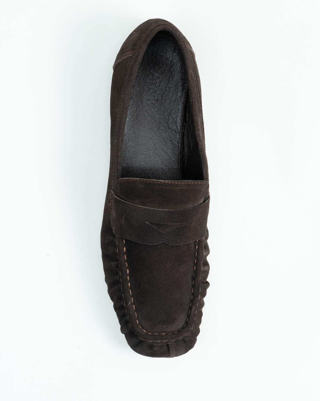 This Atene loafers are crafted in rich brown suede, featuring a classic penny strap and a timeless moccasin-inspired upper. Refined yet versatile, the gathered detailing adds a distinctive touch, making them perfect from day to evening.
